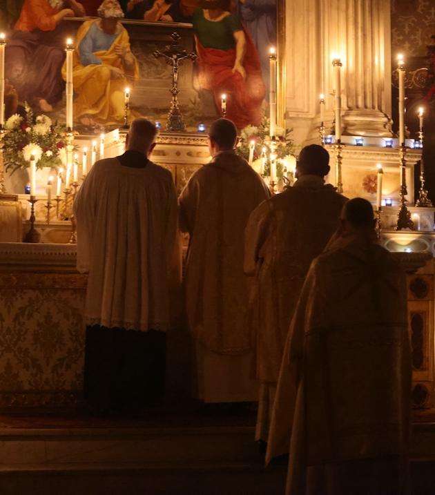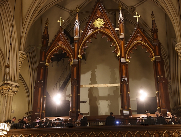 The magnificent 1868 Erben organ is still undergoing restoration. Jared Lamenzo, Director of Music of the Basilica, was the evening’s Director of Music. The musical forces of the basilica were reinforced by the visiting choir of Sidney Sussex College, Cambridge(David Skinner, Director of Music).