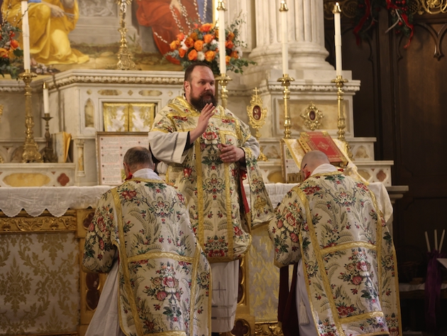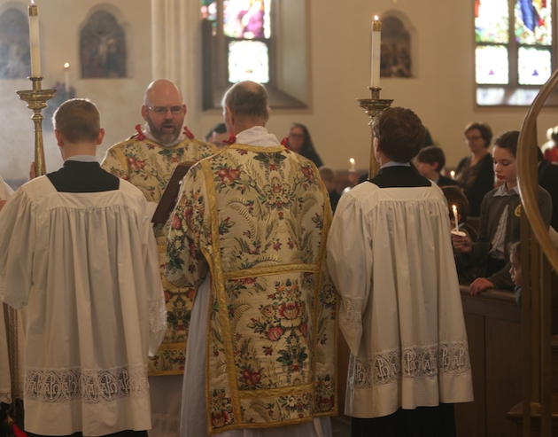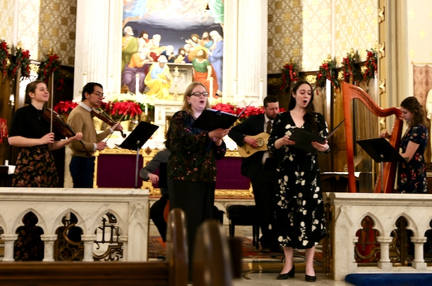 On February 1 a remarkable concert took place at St. Mary’s church in Norwalk CT. Performers from the Juilliard school presented 17th century music: first of Italy, then of Bohemia (at the time part of the Holy Roman Empire). Charles Weaver, the music director at St. Mary’s and a teacher at the Juilliard, led the concert and performed on the theorbo and guitar. The other performers were mainly his students: