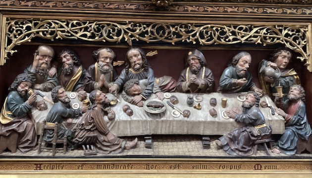 Inside, the restoration after the 2019 fire has given the interior a bright, almost whitewashed look. I suppose this is intended to recreate the appearance of the cathedral in the 12th and 13th centuries – at the time of its construction. The problem is that many centuries have elapsed since then! And the effects are magnified by the bright lighting installed now. (We have earlier discussed similar restoration initiatives – or deformations – in New York at St. Patrick’s cathedral.