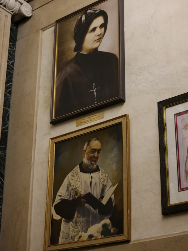 (Above) Some more recently canonized or beatified holy men and women are also commemorated at Our Lady of Pompeii: at top, Clelia Merloni (1861-1930) (Beatified 2018).