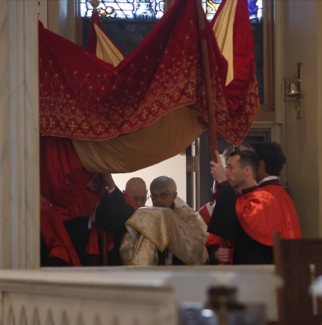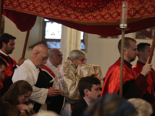 (Above and below) The procession of the Blessed Sacrament, accompanied by the Vexilla Regis of Anton Bruckner.