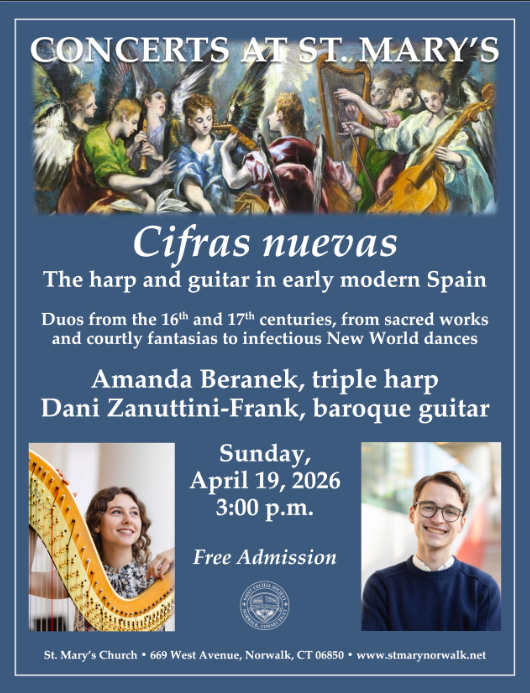 Cifras nuevas presents music from the 16th and 17th centuries for the duo of harp and guitar or vihuela. Widely attested to in European iconography and Latin American folkloric traditions, this combination of instruments performed music ranging from ornamented canto llano to dances of African origin. The first half of our program will feature sacred works and instrumental fantasies from the 16th century, including Luis Venegas de Henestrosa’s setting of the “Ave maris stella.” The second half will explore the preludes and dances of the 17th century, spotlighting the dual influences of Italian harmonic innovations and the rhythms of Spain’s colonial possessions.