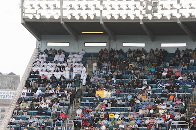 Dominican sisters assembled in the very topmost corner of the stadium.