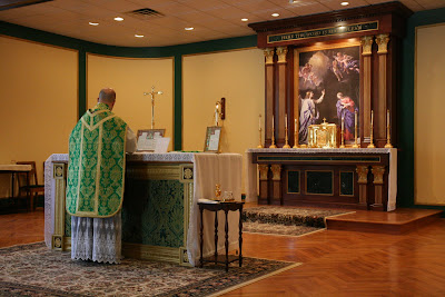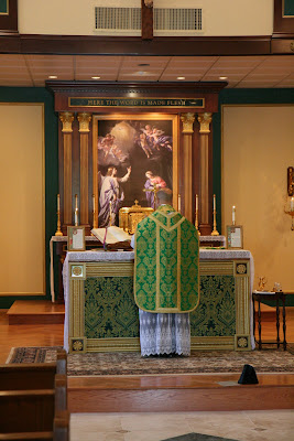 St. Gabriel’s parish (Father Cyprian P. La Pastina, Pastor)has been valiantly trying to celebrate the only traditional Mass in Stamford Connecticut at 12:30 on Sundays. We would have hoped for a better response – but based on experience it takes a long time for the congregation to develop around the traditional liturgy. Moreover, an afternoon schedule is never popular. The liturgy is a low mass – this particular Sunday without the benefit of servers – in a very “Reform of the Reform” architectural setting. We hope to have a further report from St. Gabriel’s soon.