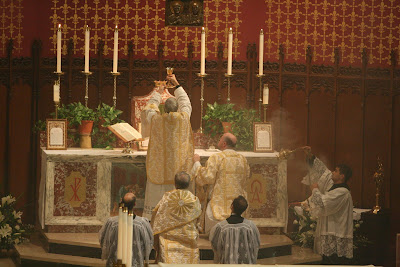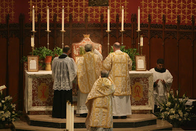 It was a remarkable weekend for the Traditional Mass in Connecticut. On this glorious Autumn Sunday Solemn masses were celebrated in Norwalk and New Haven; sung traditional masses were celebrated in Waterbury and Moodus. A magnificent solemn high Mass was celebrated the day before in Stamford. Some of these masses involved the same personnel; a further solemn High Mass planned for Stamford on this feast had to be deferred simply because all trained servers were involved in one or more of the other masses. And these are only the masses that I know of!