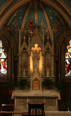 As Summorum Pontificum progresses, the Traditional Mass reassumes its rightful place in the life of the Church. It has emerged from the out of the way chapels and deserted parishes of the indult era and nowadays appears in the “best circles” of the Church. In the magnificent cathedral of Savannah, for example, a Missa Cantata is celebrated early each Sunday afternoon. A congregation of people of all ages is present. The sanctuary of the cathedral has suffered some frightful restoration work. However, the glorious Victorian surroundings of 1900 survive and provide a fitting environment for this liturgy.