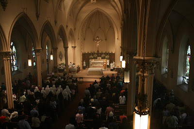 On Sunday, May 24, the parish of St. Mary’s Norwalk celebrated a Traditional Solemn mass for the tenth anniversary of the ordination of Father Greg Markey, the pastor. It was truly a joyous occasion for the various communities that make up this parish. As Fr. Markey put it in his sermon, the day should not be about him but about Christ. We can truly see over the last two years the amazing fruits that devotion to reverence and mystery in the liturgy can bring forth. We look forward to to the ongoing restoration of this church building to its former glory.