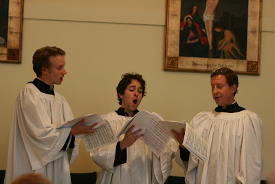 This evening a Missa Cantata was celebrated at St. Gabriel’s, Stamford in honor of Our Lady of Mt Carmel. The pastor, Fr. Cyprian LaPastina, was the celebrant and deacon Aaron Huberfeld of the Institute of Christ the King preached. It was instructive to experience how effective the Traditional liturgy can be in the more intimate setting of this church. Those familiar with this church will note that the sanctuary can be adapted for both the Traditional and Novus Ordo masses. Some aspects of this ceremony might raise eyebrows among liturgical purists. For example, to simply read the epistle and gospel in English (on shaky authority)while surrounding them with Latin chant downgrades the liturgical and aesthetic impact of the readings. And it seems questionable to chant a hymn during the reading of the last gospel. Nevertheless, it was an impressive start (or rather restarting) of the celebration of the Traditional Mass at this parish.