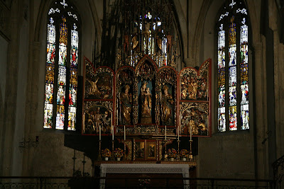 In the Nonnberg Benedictine monastery of Salzburg there are a number of fine examples of medieval art – including this Gothic reredos at the main altar. (The future Maria von Trapp was a novice here).