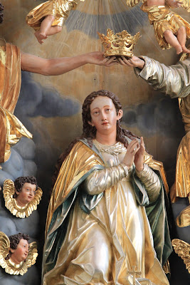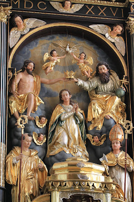 The coronation of the Virgin forms the centerpiece of this reredos. In the German-speaking areas (the Holy Roman Empire and Switzerland)there is continuity between the late medieval altarpiece, renaissance and early baroque creations and the final late baroque/rococo flowering in the eighteenth century,