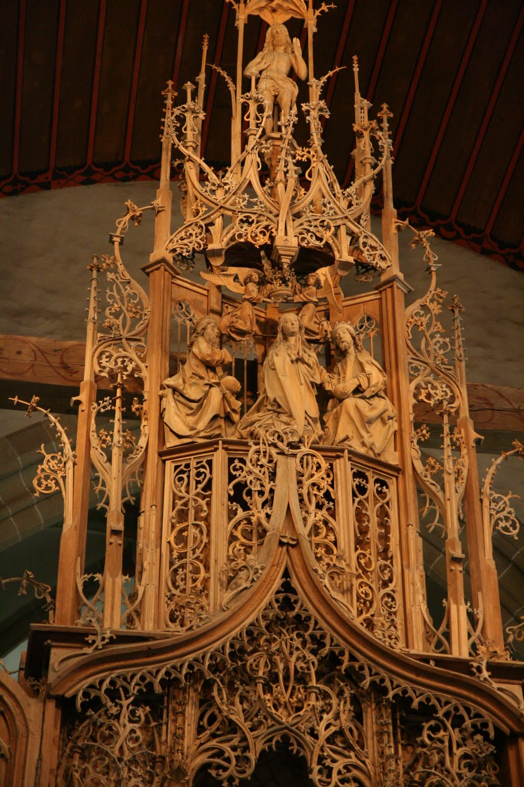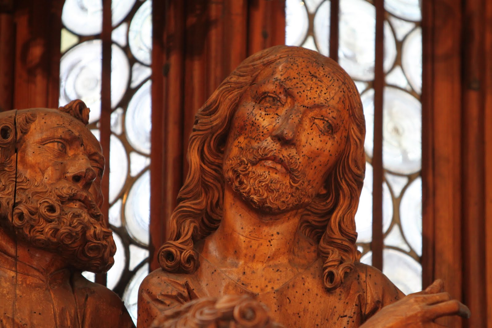 The main church of Rothenburg-ob-der-Tauber (above)contains a number of altars and important works of medieval art. Among them is Riemenschneider’s altar of the Holy Blood which focuses on the Last Supper.