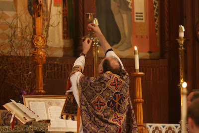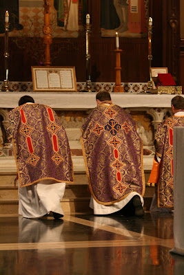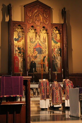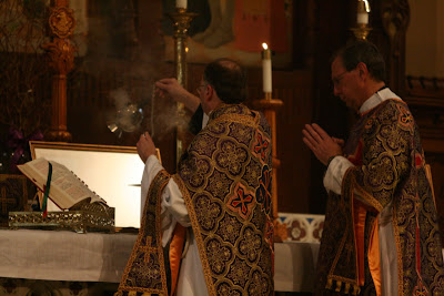 The Solemn Traditional Mass returned to Fordham University this afternoon in appropriately splendid form. Music, vestments and ceremonial were, as expected, first rate. This liturgy was celebrated at the request of students and the sizable congregation of visitors and students (miraculous in the normal context of “campus ministry”) evidenced the high level of interest. Fordham University has performed a valuable service – if the Traditional Mass can be celebrated there it should encourage efforts at other universities. We are aware of 4 insitutions of higher learning within the “tri-state area” – 2 “Catholic”, 2 very well-known secular – where efforts to organize Traditional services so far have enountered the adamant opposition of the relveant Catholic chaplaincies. Perhaps the success at Fordham will inspire a renewed initiative to help them change their minds….