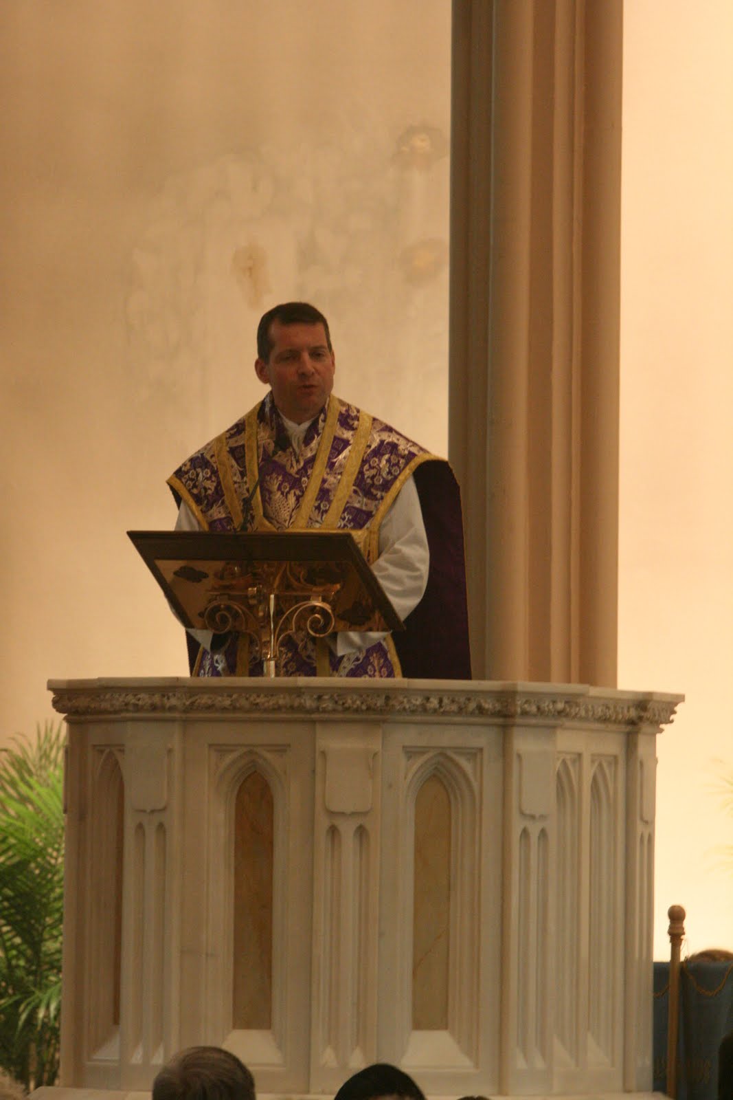 The Palm Sunday liturgy began outside with the blessing and distribution of palms. The procession, featuring the children’s choir, followed. A congregation of over 400 attended the liturgy which lasted some 2 1/2 hours (including the procession). The reading of the Passion, involving three cantors and the schola, was particularly memorable.