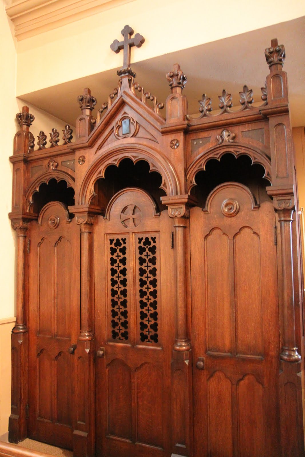 St. Mary’s parish, Norwalk, CT, began Holy Week by celebrating Palm Sunday in the beautifully restored surroundings of the restored sanctuary. In addition, a new pulpit, baptistery and confessional have been installed. The ensemble was designed by Duncan Stroik and makes use of furnishings acquired from many other churches. The work on this Phase I of the restoration was (mostly) complete by today. Further phases include the painting of the church interior and exterior and the acquisition of a reredos for the high altar.