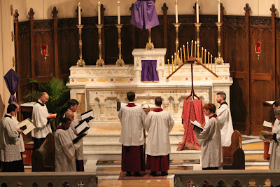 A not insignificant congregation at St. Mary’s, Norwalk, CT, experienced the transcendent beauty of the Tenebrae service (Holy Thursday Matins and Lauds) this evening.The service lasted some 2 1/2 hours.
