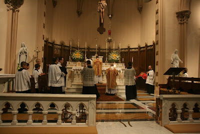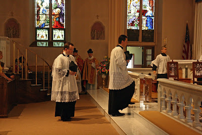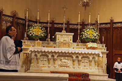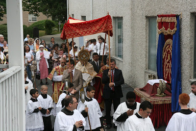 By popular demand, here are additional pictures of Sunday’s celebration of the feast of Corpus Christi – including more of the Solemn mass that preceded the procession. On that day St Mary’s had some prominent visitors: Fr. Uwe Michael Lang, Fr. John Zuhlsdorf and Mr. Mark Froeba of the Society of the Sacred Heart in New York.