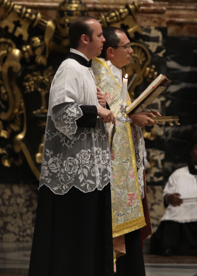 So the Traditional Mass was celebrated once more in St. Peter’s Basilica.1) Saturday’s Mass resonated throughout the secular media. Even representatives of the establishment European Catholic media were mildly positive (except for a theologian in Germany, enraged by the “premodern” symbolism he saw). it was a great accomplishment, indeed – not just for the organizers and sacred ministers, but for all those who for a few days (not 28 years like Cardinal Simonii) endured a little discomfort in support of Catholic Tradition.