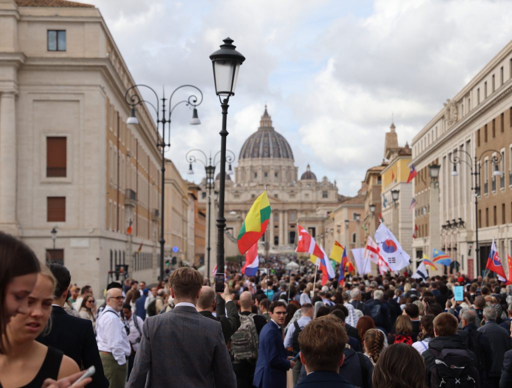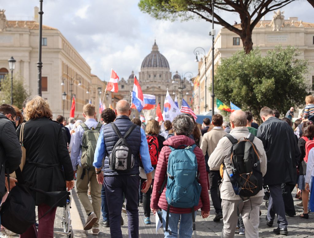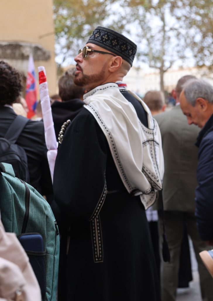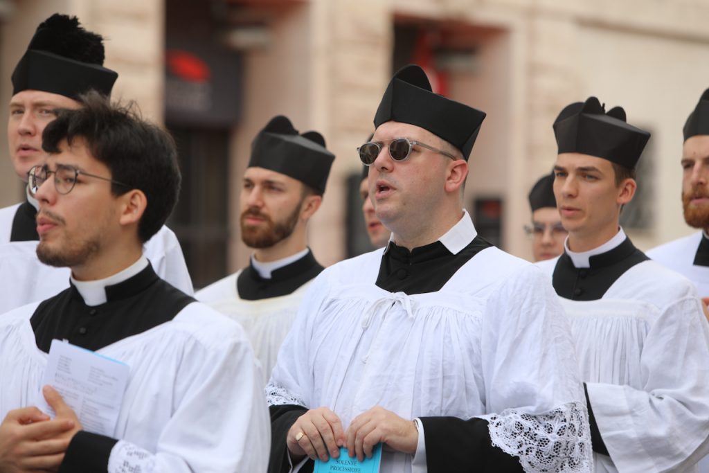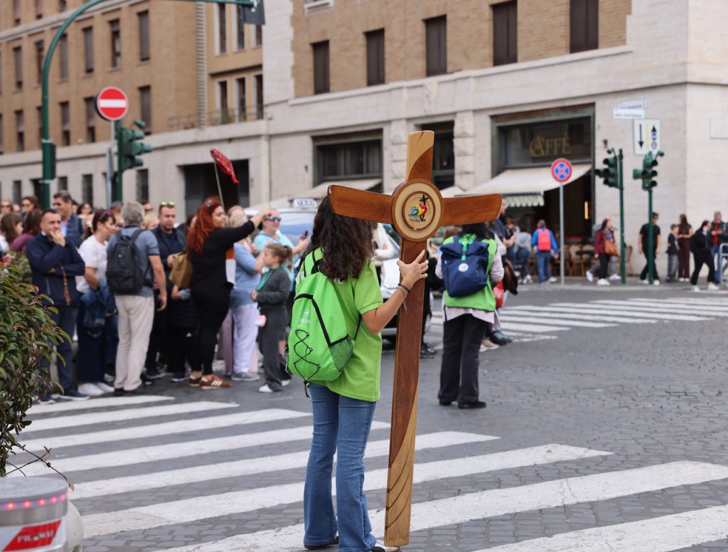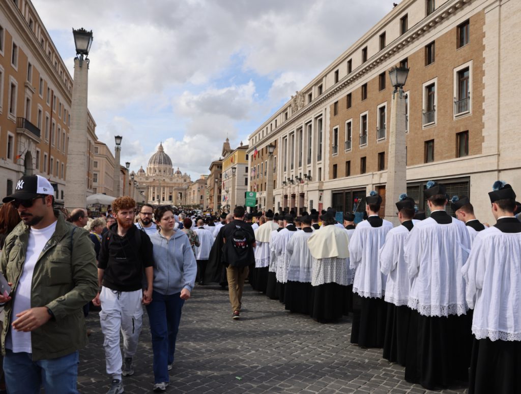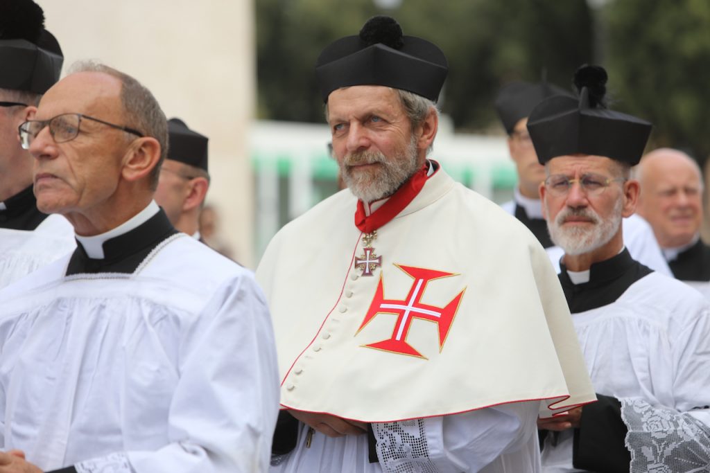 (Above). Saturday Morning. Assembly of the pilgrims and recitation of the Rosary in the street before the church of Santi Celso e Giuliano. Now closed for restoration, it is under the administration of the Institute of Christ the King, Sovereign Priest. But this modestly dimensioned church would in any case have been totally inadequate for this number of pilgrims!
