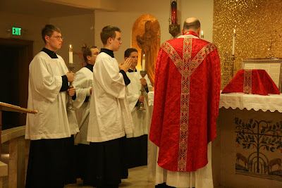 The Mass went off seamlessly, and the choir sang beautifully. In his sermon, Fr. Boyd declared that the day was solemn because the Tridentine Mass was now able to be freely celebrated throughout the world. He expressed hope that the motu proprio would help bring about reconciliation of Catholics separated from the Church.