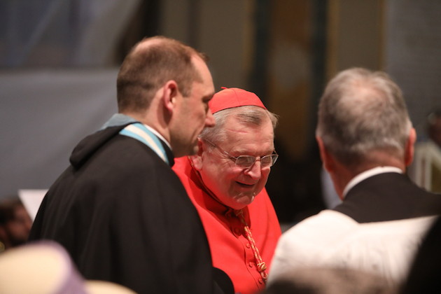(Above and below) Cardinal Burke, the patron of the 2025 Summorum Pontificum pilgrimage, sat in choir.