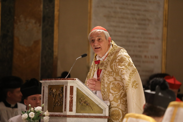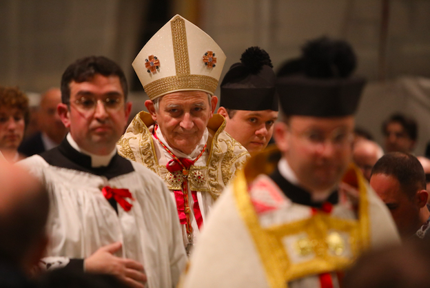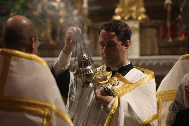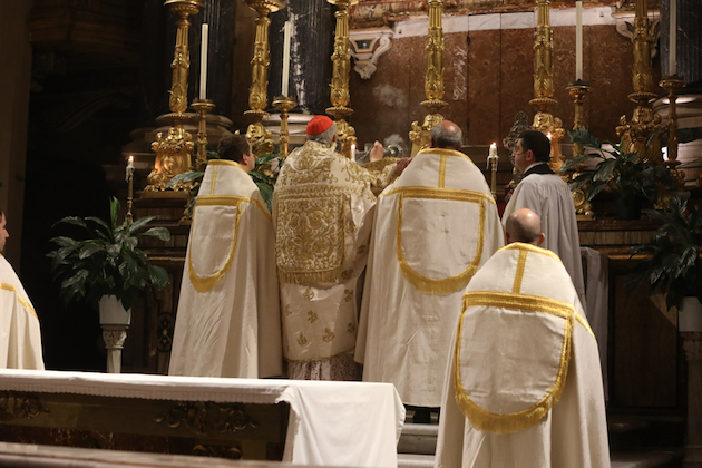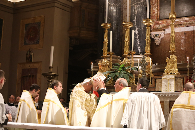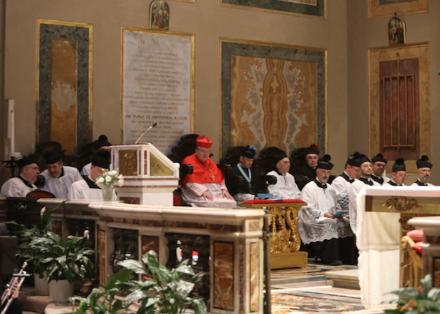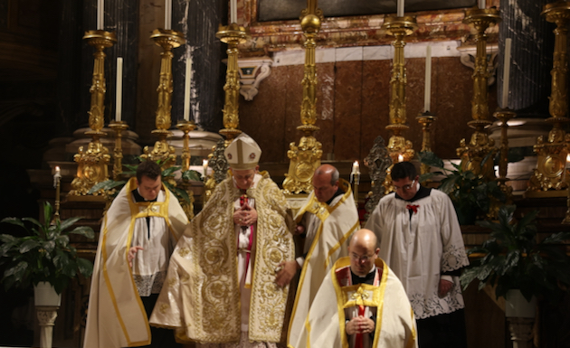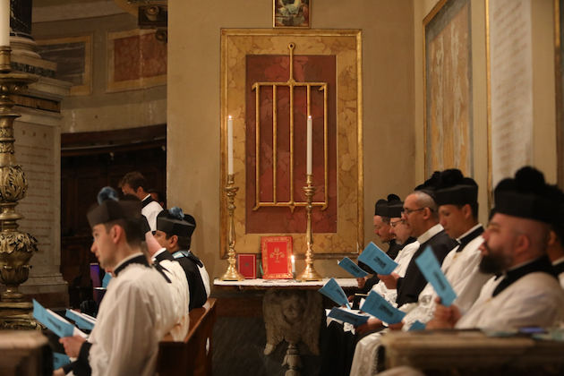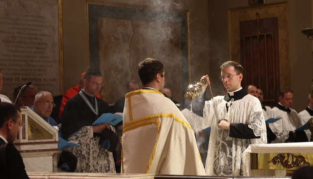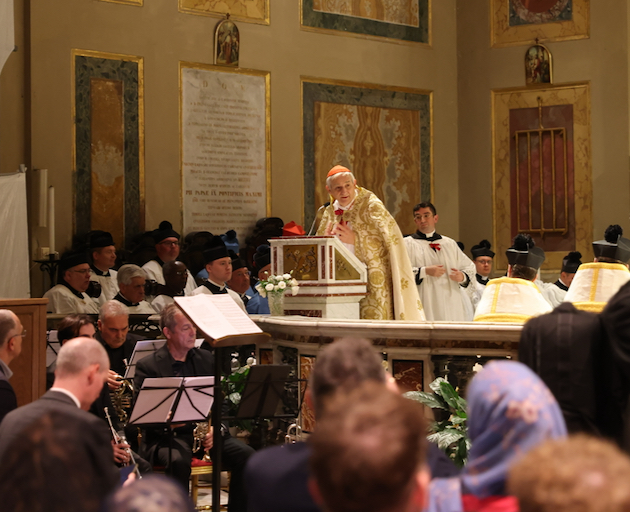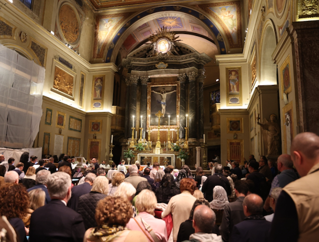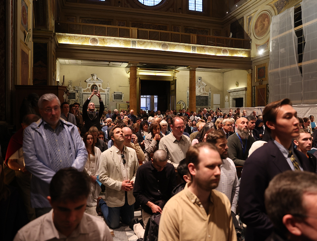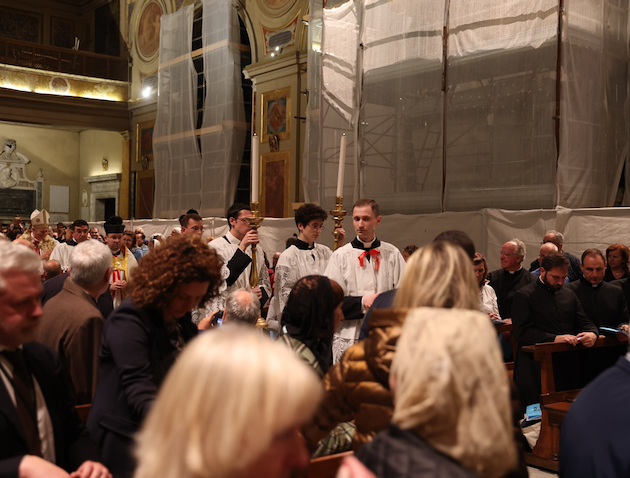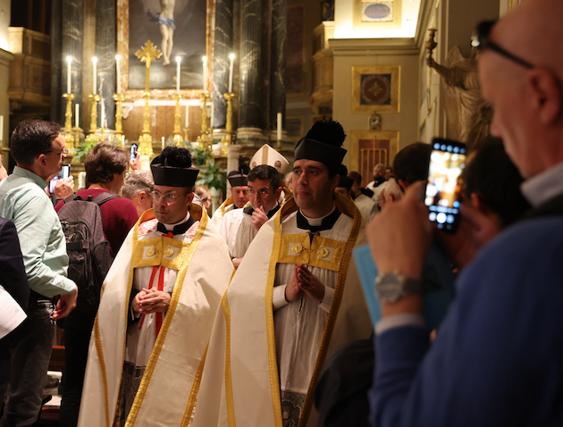 The 2025 Pilgrimage Ad Petri Sedem formally began with Solemn Vespers in the Basilica of S. Lorenzo in Lucina. Cardinal Matteo Maria Zuppi, Archbishop of Bologna, presided at the vespers and also preached. The ceremony was conducted by the Institute of the Good Shepherd.