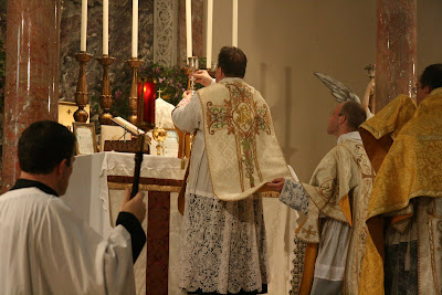 Certainly one of the most tragic losses inflicted by the Council and its implementers was the disappearance of the liturgical “black” vestments for the requiem mass, Good Friday etc. This color however happily survives in the ‘Gregorian” (Traditional) Mass. We say “black” in quotation marks because such vestments, in my experience, are always worked with silver, producing a most wondrous effect, as in these images. Twice in the last few weeks due to tragic circumstances the Catholic community in Fairfield county has had a chance to experience the Solemn Requiem mass.