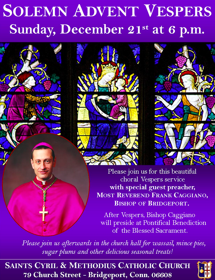 Sts. Cyril and Methodius Oratory, Bridegport, CT, 7:45 am Low Masss; 6 pm High Mass (“Missa O Soberana luz” – Felipe de Magalhães). Also on Sunday, Dec. 7: 6:00 p.m. – Solemn Choral Vespers and Benediction (First Vespers of the feast)