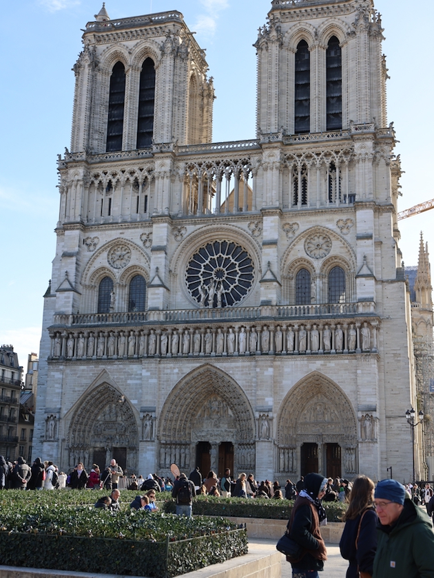 How has the restoration of the cathedral of Notre Dame de Paris fared? In February we made a visit to find out. By arriving at opening time, we mostly avoided standing in line. Just an hour or so later, a queue wound endlessly all around the square in front of the cathedral. Certainly, touristic interest is there!
