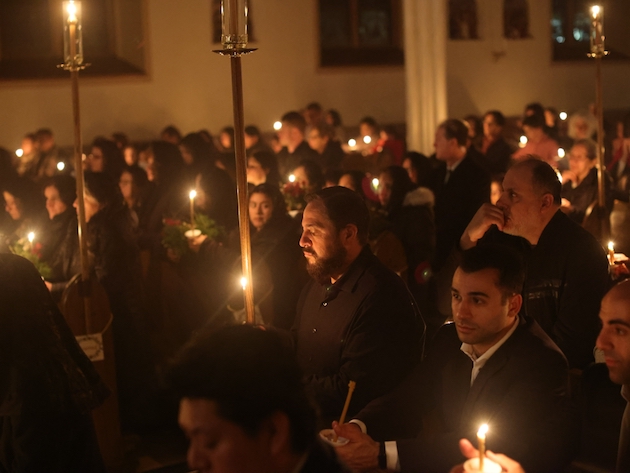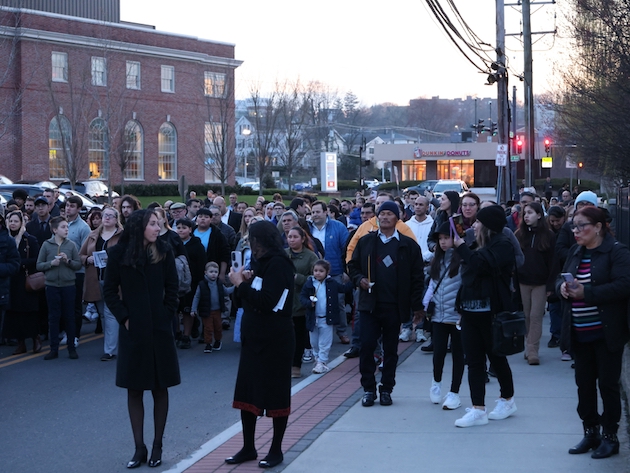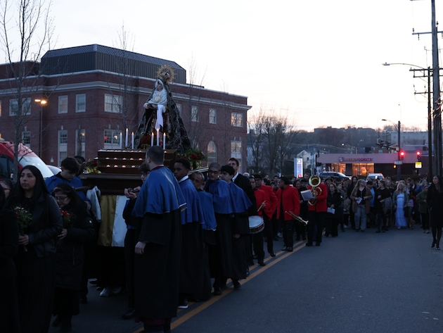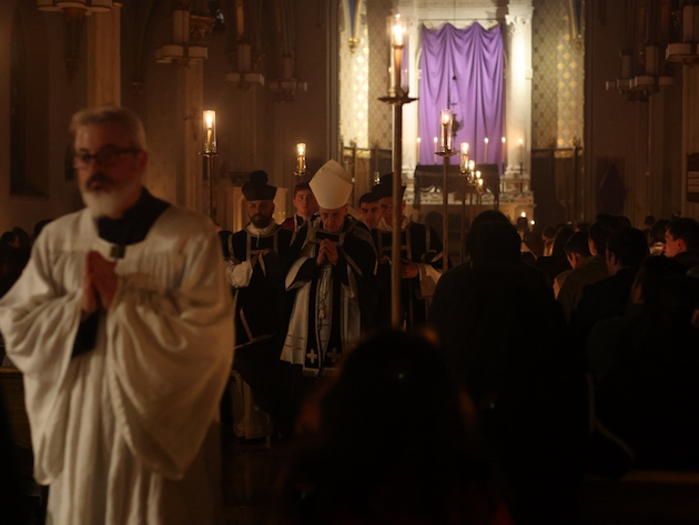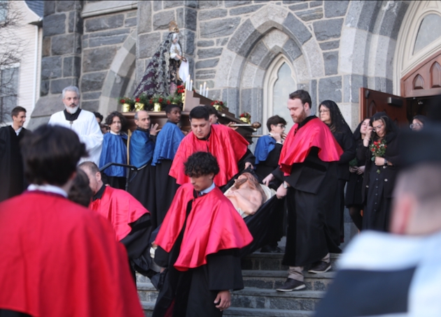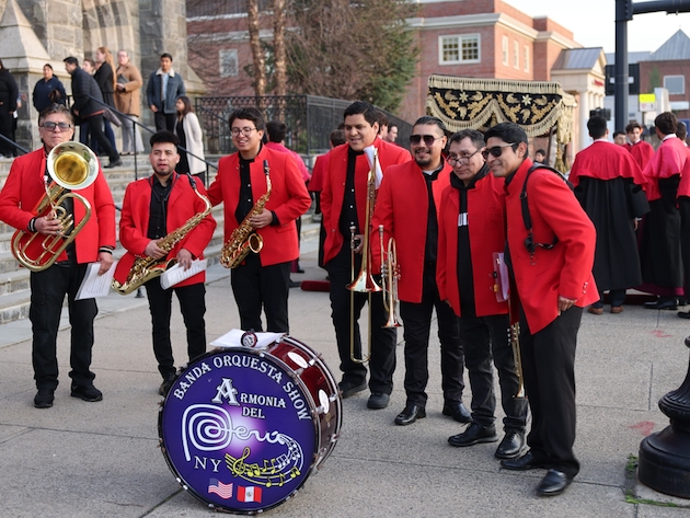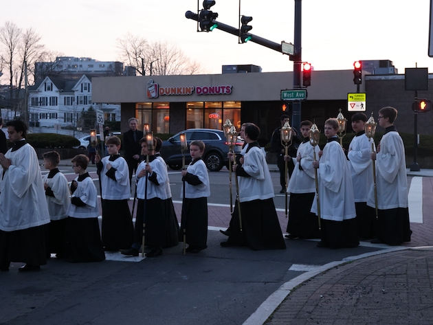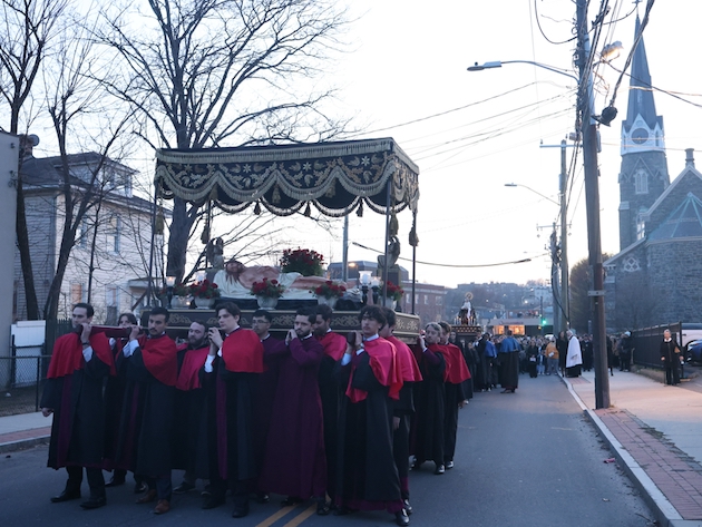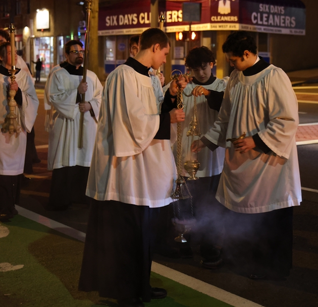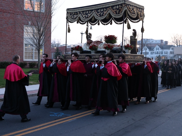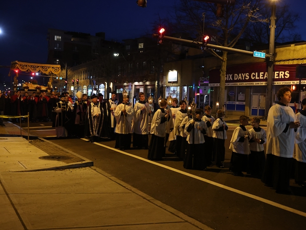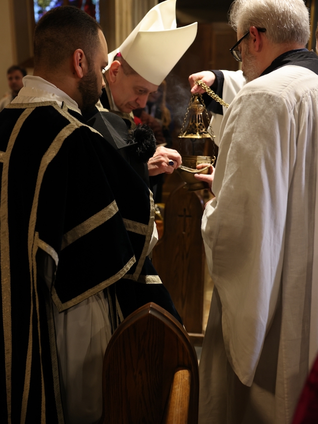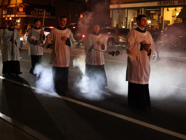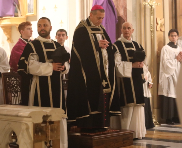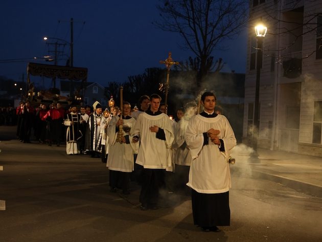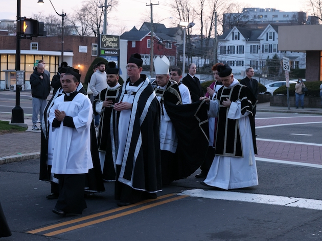 BIshop Frank Caggiano of Bridgeport was present. (Incensing prior to the procession.)